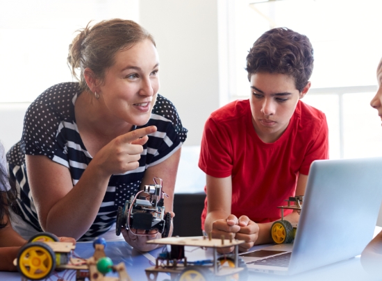 Un terrain de foot et des robots footballeurs pour inviter les élèves à faire preuve de créativité en programmation