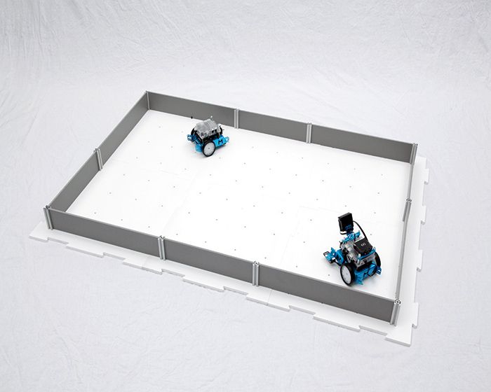 • Des parcours peuvent être créés en rajoutant des piliers et cloisons, ce qui permet de faire évoluer l'arène robotique vers un labyrinthe pour proposer de multiples activités de programmation