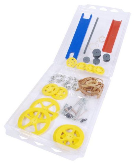 Banc d'essai en kit à monter autour du dragster à ressort, permettant de tester, comparer et choisir les meilleures solutions techniques, ainsi que d'explorer des principes de bras de levier, de rapport de transmission et d'adhérence