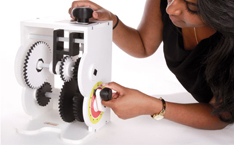 Maquette homothétique d’une boîte de vitesse pour démontrer simplement le fonctionnement de ce mécanisme complexe