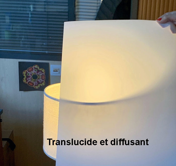 • Translucide et diffusant dans les couleurs claires, pour réaliser des abat-jours par exemple.