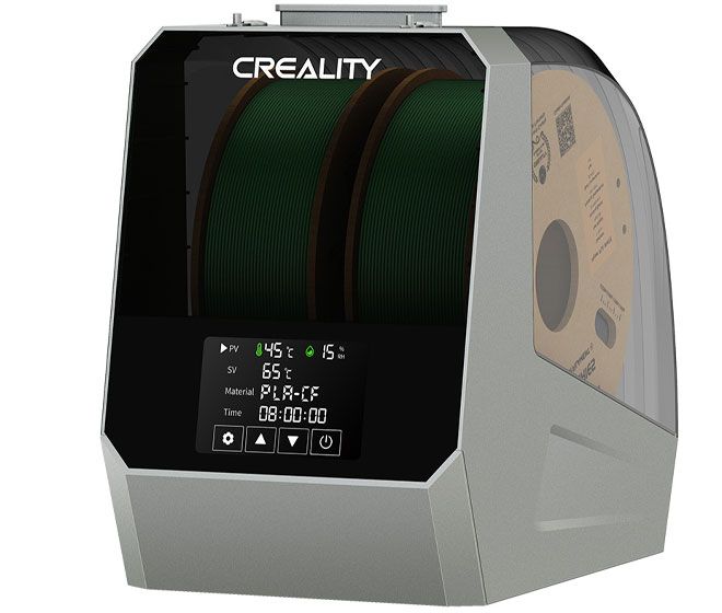 L'unité de stockage et dévidoir chauffant Space Pi Heater Plus Creality peut contenir et traiter 2 bobines de 1 kg. Il élimine l’humidité des filaments d'impression 3D, améliorant ainsi leur conservation et la qualité d'impression (évitant filage, colmatage, mauvaise adhérence et décalage des couches). Peut être utilisée pour imprimer sur 2 imprimantes en même temps.