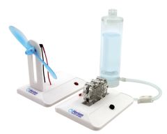 • Nombreux supports pédagogiques : voiture à hydrogène télécommandée, pile à hydrogène, mini-éolienne, éolienne à axe vertical, etc...