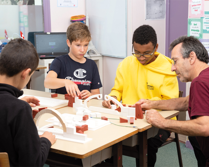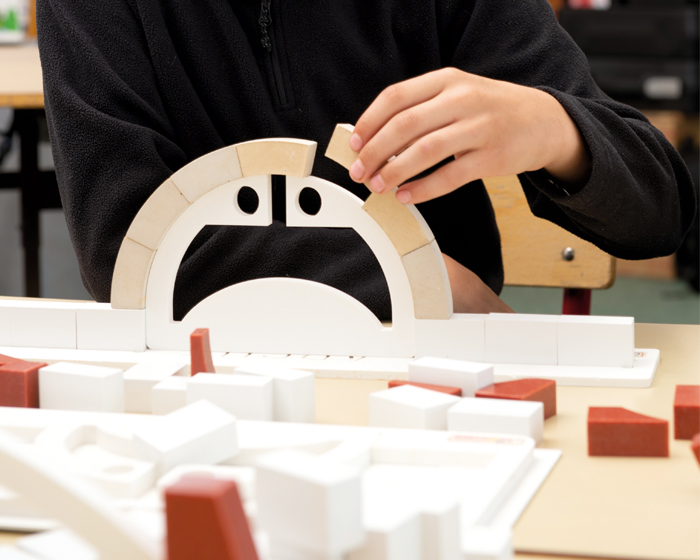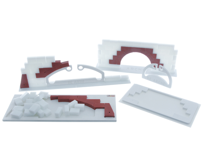 La maquette expérimentale arc de plein cintre met en évidence le principe de stabilité d’une arche à partir d’une structure réalisée par empilement.