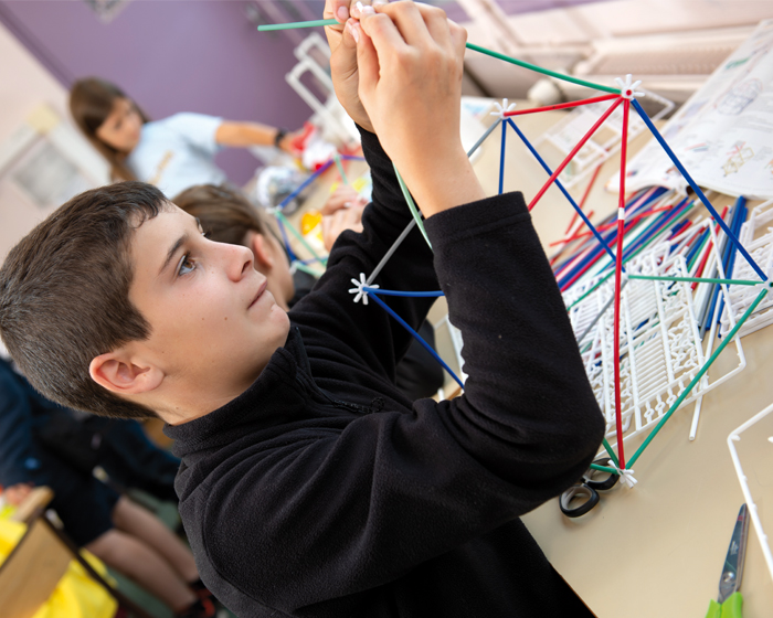 La maquette expérimentale ossatures treillis se compose d'un système de connecteurs et de tubes permettant de réaliser et tester en toute liberté tous types de structures treillis : ponts, pylônes, bâtiments, géodes, etc.