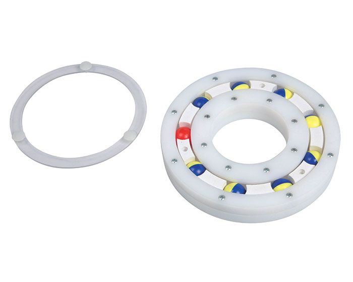 Maquette expérimentale robuste et précise, dotée de billes bicolores légères à monter, démonter et faire tourner pour comprendre le fonctionnement d'un roulement à billes.