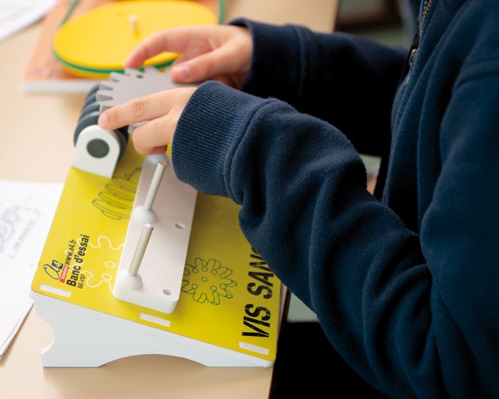 • Maquette dotée de grosses pièces colorées et robustes pour monter, démonter et tester différentes configurations de transmission