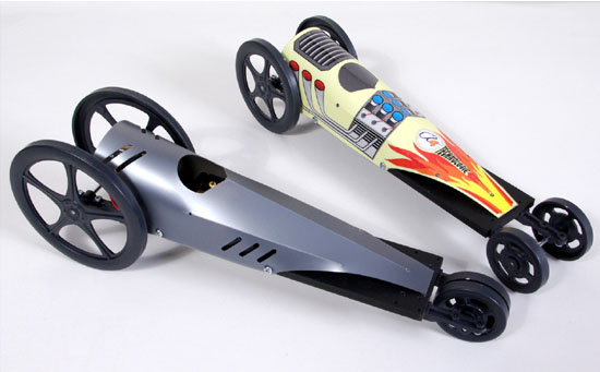 Les dragsters de compétition autorisent de multiples choix créatifs (transmission, guidage, carrosserie) et permettent de mettre en œuvre tous les moyens du laboratoire de technologie.