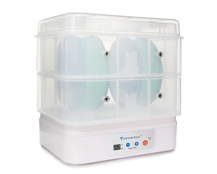 L'unité de stockage chauffante de Tiertime élimine l’humidité des filaments d'impression 3D de 1,75 à 3 mm de diamètre, quel que soit leur matériau.