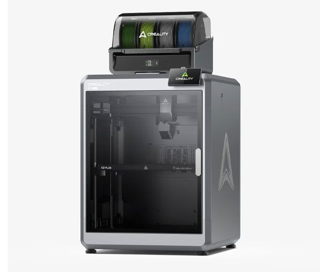 L'imprimante 3D K2 Plus de Creality en version combo avec son système intelligent de gestion automatique des filaments (CFS) pour des impressions rapides, multicolore et grand format.