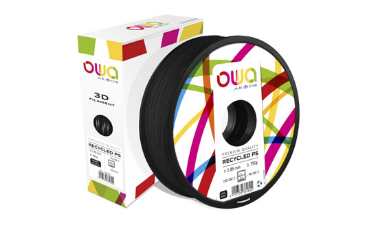 • Le PLA, synthétisé à partir de matières végétales, est plus facile à imprimer mais ne tient pas thermiquement (maxi 50 °C). Plus cassant que l’ABS, son coefficient de dilatation inférieur permet toutefois un travail à plus basse température et une moindre rétractation lors du refroidissement (idéal pour les grandes pièces). De nombreuses imprimantes 3D sans plateau chauffant ne travaillent qu’avec du PLA.
