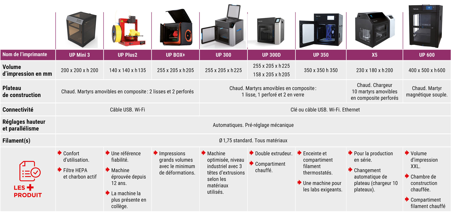 Tiertime est le 1er fabricant historique d’imprimantes 3D industrielles à s’être intéressé aux imprimantes de table avec la gamme UP.