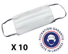 Lot de 10 masques barrière, cat. 1, lavable 10 fois, testé DGARef : MASQ-BAR-10Lot de 10 masques barrière réutilisables40,00 €HTSoit 42,20 €TTC -