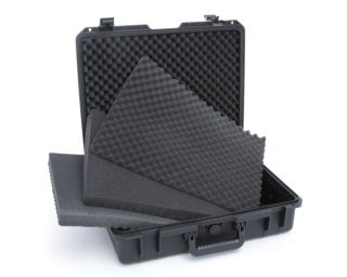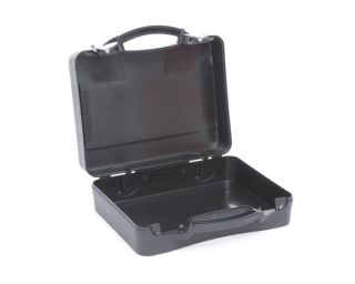 Mini-mallette noire en polypropylène, avec poignée sortantes et sans mousse de rangement, de dimensions 140 x 100 x 35 mm.