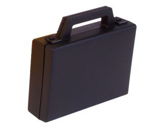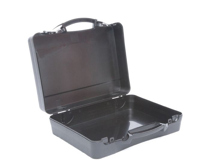 Mallette noire en polypropylène, avec poignée sortantes et sans mousse de rangement, de dimensions 441 x 310 x 130 mm.