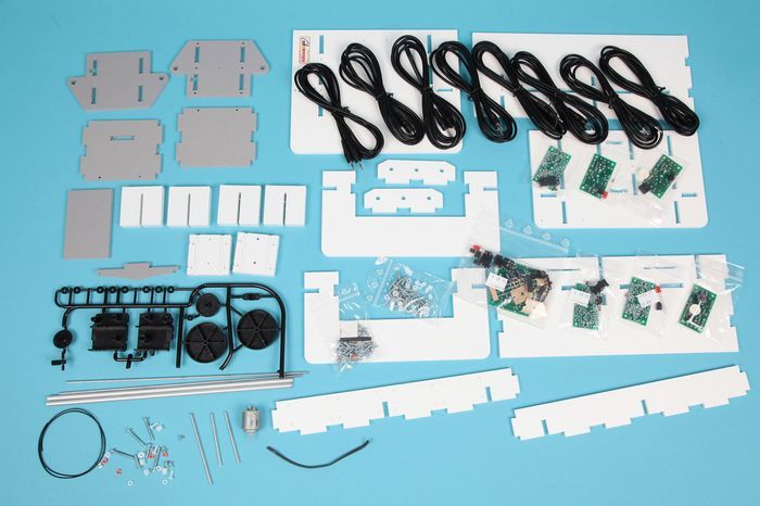 La maquette livrée en kit (implantation et brasage des modules, montage avec un tournevis).
