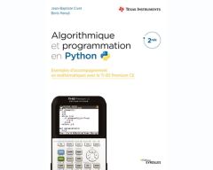 Livre Algorithmique et programmation en Python - Ed. 2019 - EyrollesRef : LIV-EYR-67769Ce cahier d’activités explique comment programmer en Python avec la calculatrice TI-83 Premium CE. Il s’adresse plus particulièrement aux profs de maths en lycée général, qui vont devoir enseigner la pro ...8,44 €HTSoit 8,90 €TTC