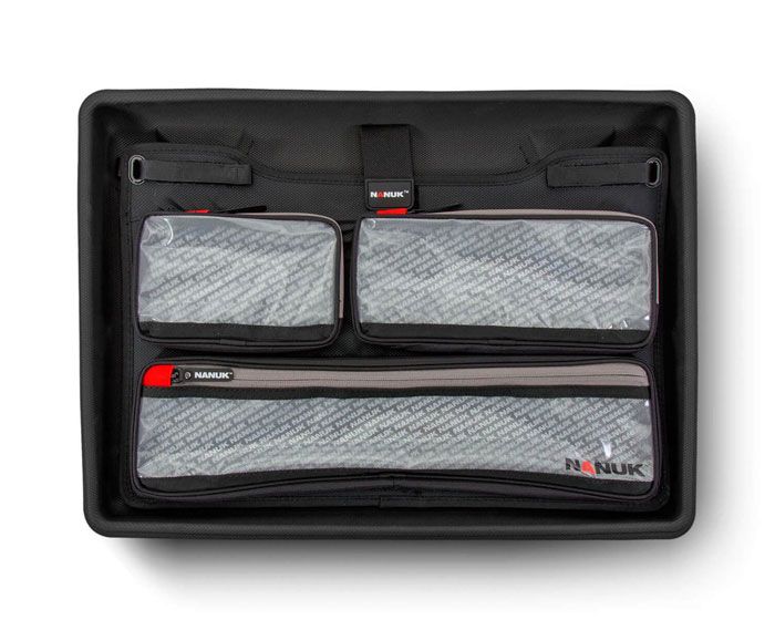 Organiseur de couvercle pour valises Nanuk 930 et 933, parfait pour ranger dans des pochettes transparentes et de façon parfaitement organisée votre matériel, les cordons d'alimentation et les accessoires