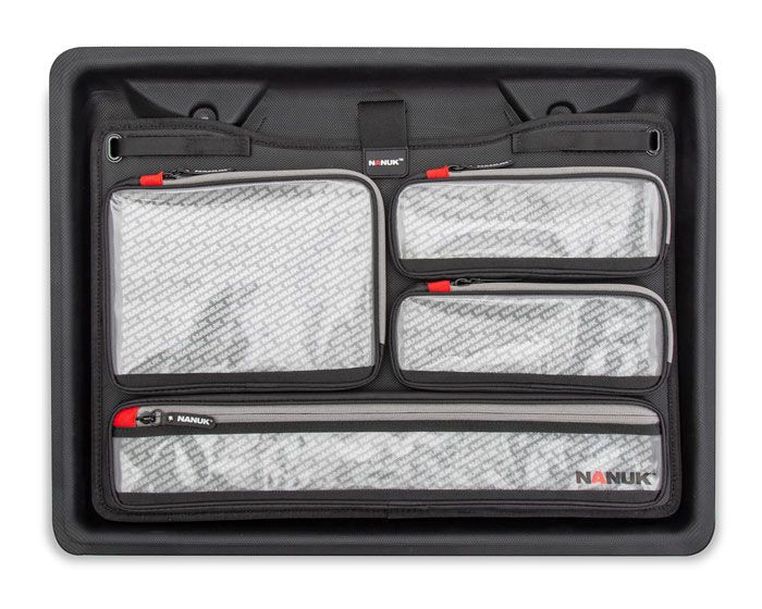 Organiseur de couvercle pour valises Nanuk 950, parfait pour ranger dans des pochettes transparentes et de façon parfaitement organisée votre matériel, les cordons d'alimentation et les accessoires