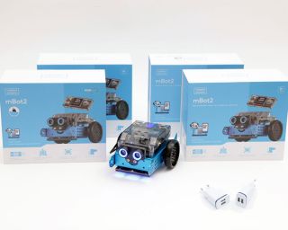 Pack 4 mBot2 en kit à monter, avec valise de rangement et chargeurs USB. Idéal pour une utilisation en classe entière avec rangement simplifié. Le robot programmable mBot2 est conçu pour l'apprentissage progressif de la programmation et de la robotique en élémentaire, collège et lycée.