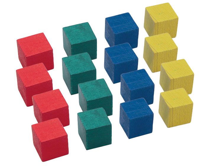 Pack de 16 cubes bois - 30 mm - Rouge, vert, bleu, jaune