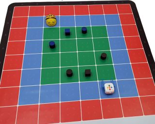 • La zone bleu ciel et la bordure noire offrent de multiples possibilités de défis adaptés à des robots programmables équipés de capteurs ou non