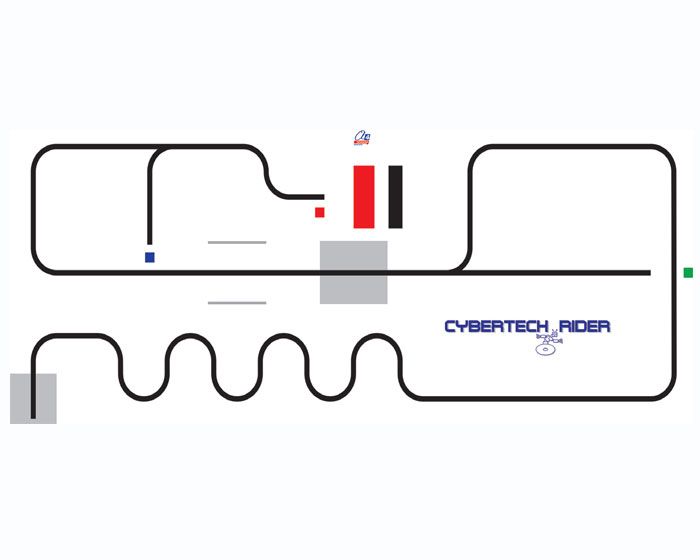 Piste imprimée sur bâche 120 x 300 cm avec thématique CYBERTECH RIDER pour concours Cybertech