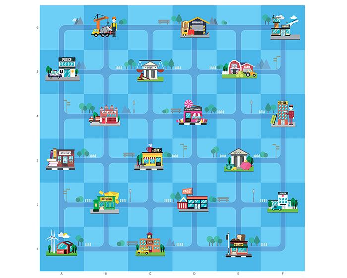Piste Matatalab thématique "Ville" (en anglais), 60 x 60 cm, imprimée sur bâche PVC souple
