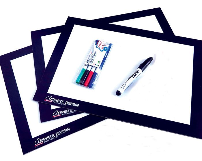 Pistes dessin avec feutres - Vinyle effaçable - Format A3 - Lot de 3