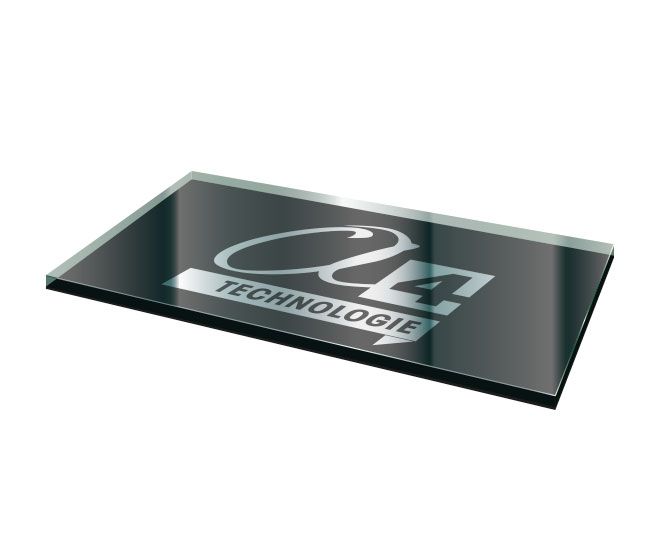 Plaque à graver Gravoglas de type PMMA transparent à surface brillante afin de produire des gravures transparentes sur fond noir