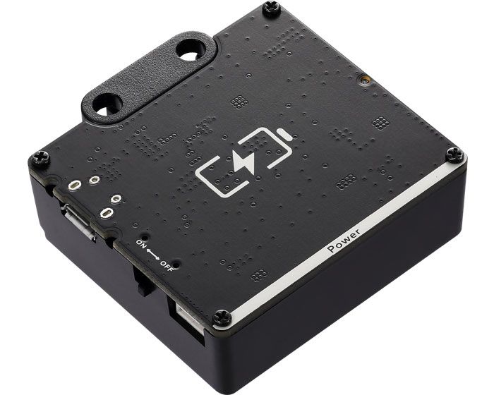 Module mBuild Power ou accu d'alimentation de Makeblock Education permettant d'alimenter d'autres modules mBuild et doté d'indicateurs de charge (On/Off et Vert/Rouge)