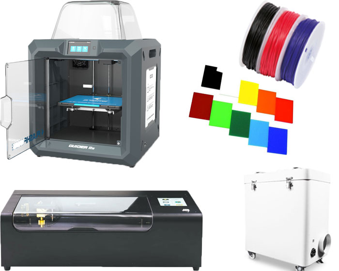 • Fabrication numérique : des packs réunissant machines et consommables pour se lancer sans perte de temps en impression 3D, découpe-gravure laser, impression textile, etc.