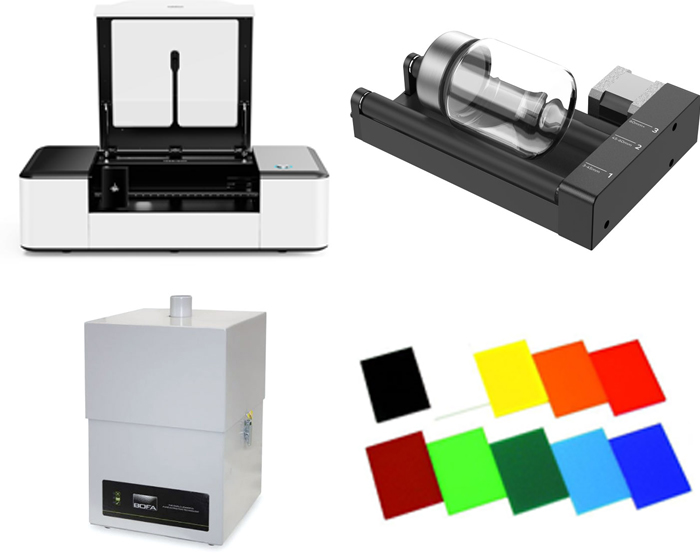 Pack de matériaux pour machines JA-100Ref : PACK-CONSO-05Pack de matériaux pour machine de découpe-gravure laser JA-100 : plastique PMMA, plaques à graver, bois contreplaqué, caoutchouc