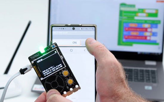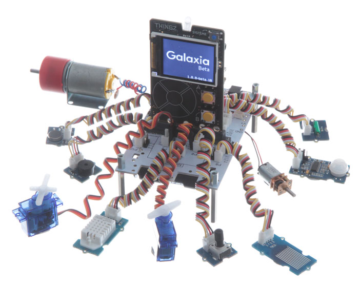 Galaxia est une carte programmable conçue pour l’apprentissage de la programmation par blocs avec l’environnement en ligne Thingz.