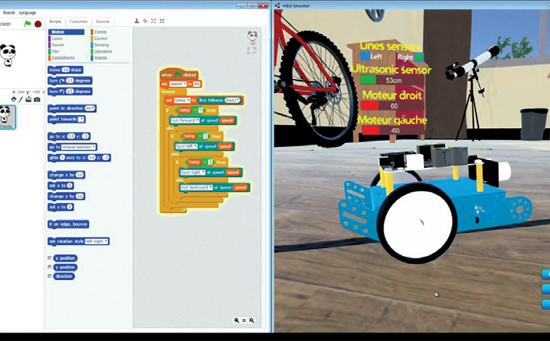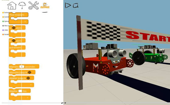 Environnements pédagogiques de simulation 3D permettant de reproduire fidèlement le fonctionnement d'objets réels, qu'il s'agisse d'une maison ou de robots programmables.