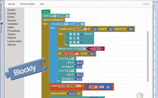 2) PICAXE Blockly intégré dans PICAXE Editor 6 (Windows)
