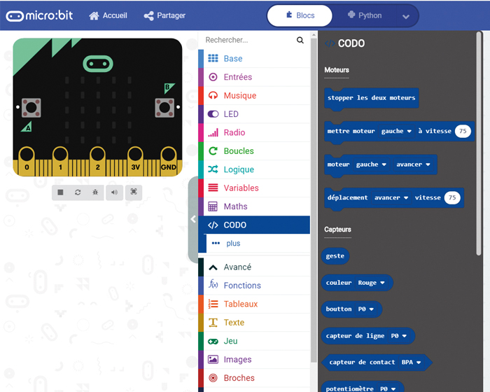 Environnement de programmation en blocs, en Python et en Javascript développé par Microsoft pour la carte micro:bit.