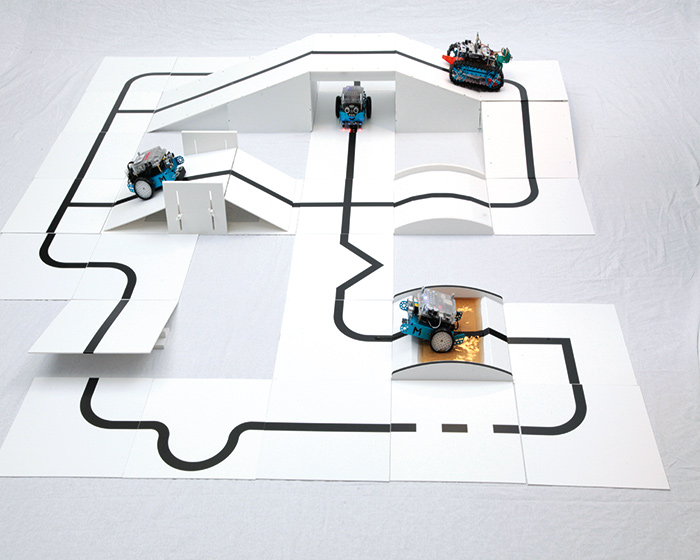 Pack parcours DefiRob avec mBot2Ref : MB-KD-EXP-05Pack parcours DEFIROB pour faire évoluer 2 robots programmables mBot2 sur un parcours de suivi de ligne où des obstacles vont donner du piquant à l’affaire : pente réglable, pont, dos d’âne, bac à sable...720,00 €HTSoit 864,00 €TTC -