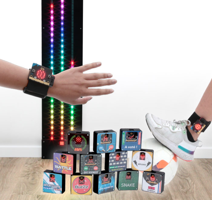 Plusieurs microPAD peuvent communiquer entre eux et/ou avec le microSCORE pour créer une variété de défis, de jeux de réflexe, ou de quiz, etc