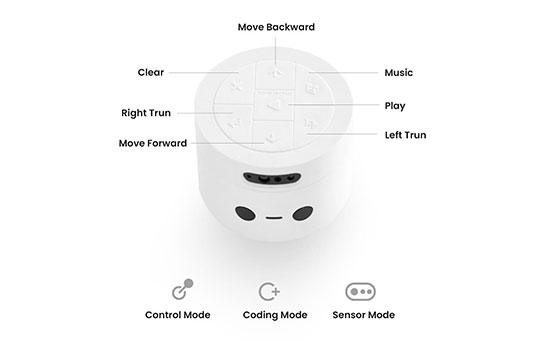 • Mode contrôle où les élèves peuvent utiliser le contrôleur comme une télécommande ou utiliser la fonction gyroscope pour contrôler le robot par le mouvement du poignet
