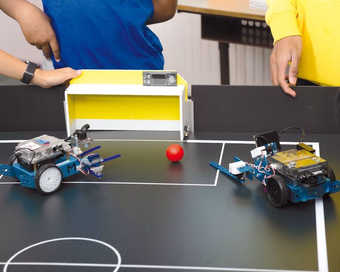 Pack classe DEFIBUT - Terrain de foot avec 2 mBot2 joueurs de footRef : DEFIBUT-PAC-MB2-1Pack classe comprenant la piste terrain de foot DEFIBUT avec 2 robots programmables mBot2 équipés de l'extension joueur de foot. Idéal pour mener des défis robotiques en groupe et inciter les élèves à être créatifs en mettant au point d ...791,00 €HTSoit 949,20 €TTC