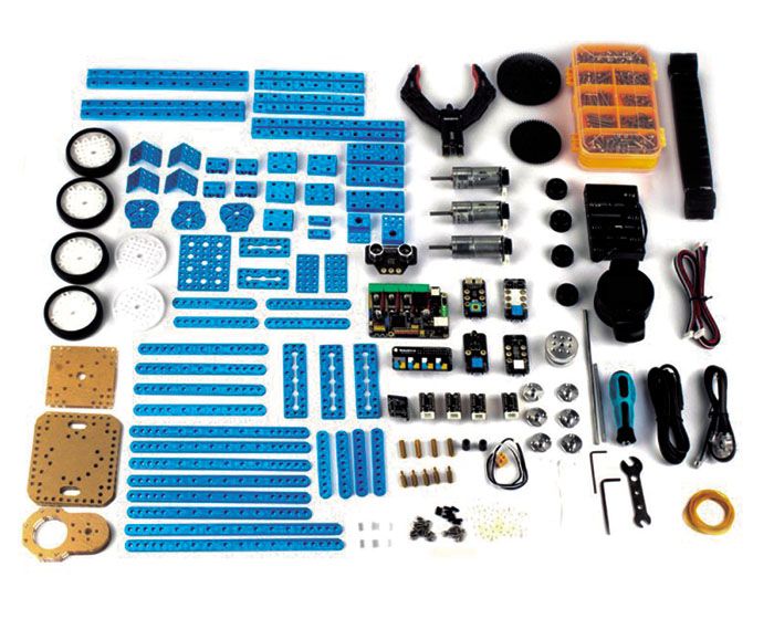 Kit robot Ultimate V2.0 pour mener des projets aussi bien de découverte de la programmation que de construction de robots complexes autour d'Arduino.