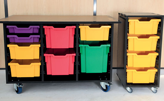 • Les étagères ou bacs-tiroirs en 4 tailles pour un rangement propre et simple