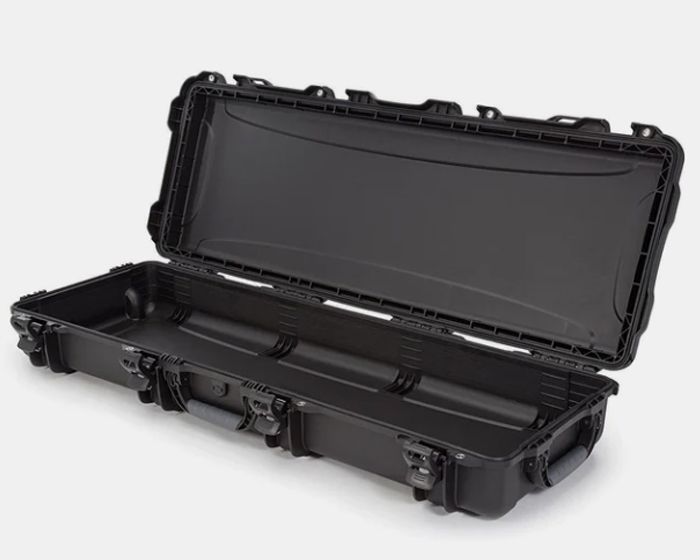 Valise Nanuk 990 noire et vide de dimensions intérieures 1118 x 368 x 152 mm : conçue pour organiser, protéger et transporter vos matériels dans des conditions difficiles, à la main ou sur roulettes