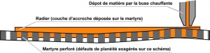 '''Pour bien comprendre l’utilité de ces réglages :''' la pièce imprimée est toujours construite sur un « radier » qui est déposé automatiquement par la machine (sauf commande spéciale dans les paramètres d’impression). Ce radier sert de couche d’accroche sur le plateau et de support stable pour l’impression de la pièce. Il constitue une référence parfaite qui gomme les éventuels défauts du plateau martyre de construction. | '''Pour bien comprendre l’utilité de ces réglages :''' la pièce imprimée est toujours construite sur un « radier » qui est déposé automatiquement par la machine (sauf commande spéciale dans les paramètres d’impression). Ce radier sert de couche d’accroche sur le plateau et de support stable pour l’impression de la pièce. Il constitue une référence parfaite qui gomme les éventuels défauts du plateau martyre de construction. | ||