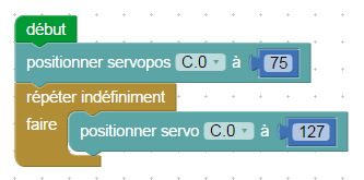 Il est possible de contrôler la position du servomoteur entre deux butées, en indiquant une position entre 75 et 225.