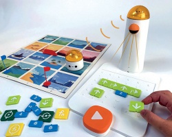 • La tour et le robot doivent être chargés à l'aide d'un cordon type USB/USB C connecté à un adaptateur secteur 5V. Leur LED témoin devient verte lorsqu'ils sont suffisamment chargés.