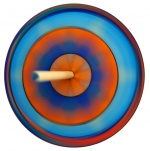Proposition d’organisation pédagogique : chaque élève réalise le motif du disque de sa toupie en cherchant à produire un effet optique (mélanges de couleurs) ou cinétique (mouvement). Après avoir monté leur toupie, les élèves les testent et comparent les différents effets visuels obtenus.