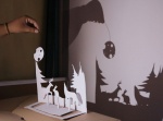 Matériel nécessaire : carton, papier cartonné, ciseaux, peinture, colle, baguette bois ou jonc PVC, projecteur.